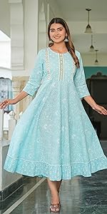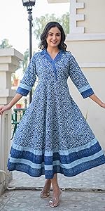 Yash Gallery Women's Cotton Floral Printed Maxi Anarkali Dress