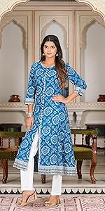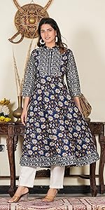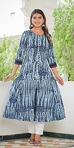 Yash Gallery Women's Cotton Blend Printed Anarkali Kurta for Women