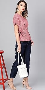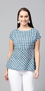 Yash Gallery Women's Rayon Geometric Straight Top for Women