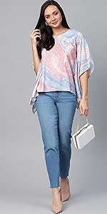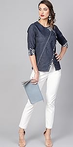 Yash Gallery Women's Denim Printed Straight Regular Fit Top For Women