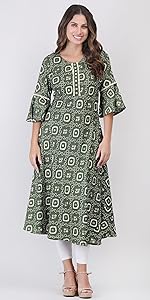 Yash Gallery Women's Cotton Bandhej Printed Anarkali Kurta