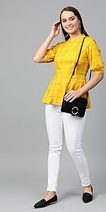 Yash Gallery Women's Rayon Checks Printed Straight Regular Fit Top For Women