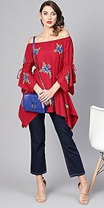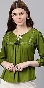 Yash Gallery Women's Regular Solid Embroidered Straight Regular Fit Tops