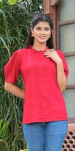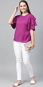 Yash Gallery Women's Rayon Dobby Solid Straight Regular Fit Top For Women